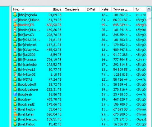 6. Теперь, когда у вас все настроено, хаб становится полностью открытым для вас. Столбик в правом углу это те пользователи, которые сейчас в сети. Щелкните два раза на понравившийся ник и вы увидите список его расшаренных файлов. Можете скачать что-нибудь для себя, а если вы ищите что-то конкретное, то тогда воспользуйтесь кнопкой поиска на верхней панели. Введите то, что вы ищите и система выдаст вам эти файлы. Если конечно они присутствует у пользователей, находящихся в данный момент в сети.